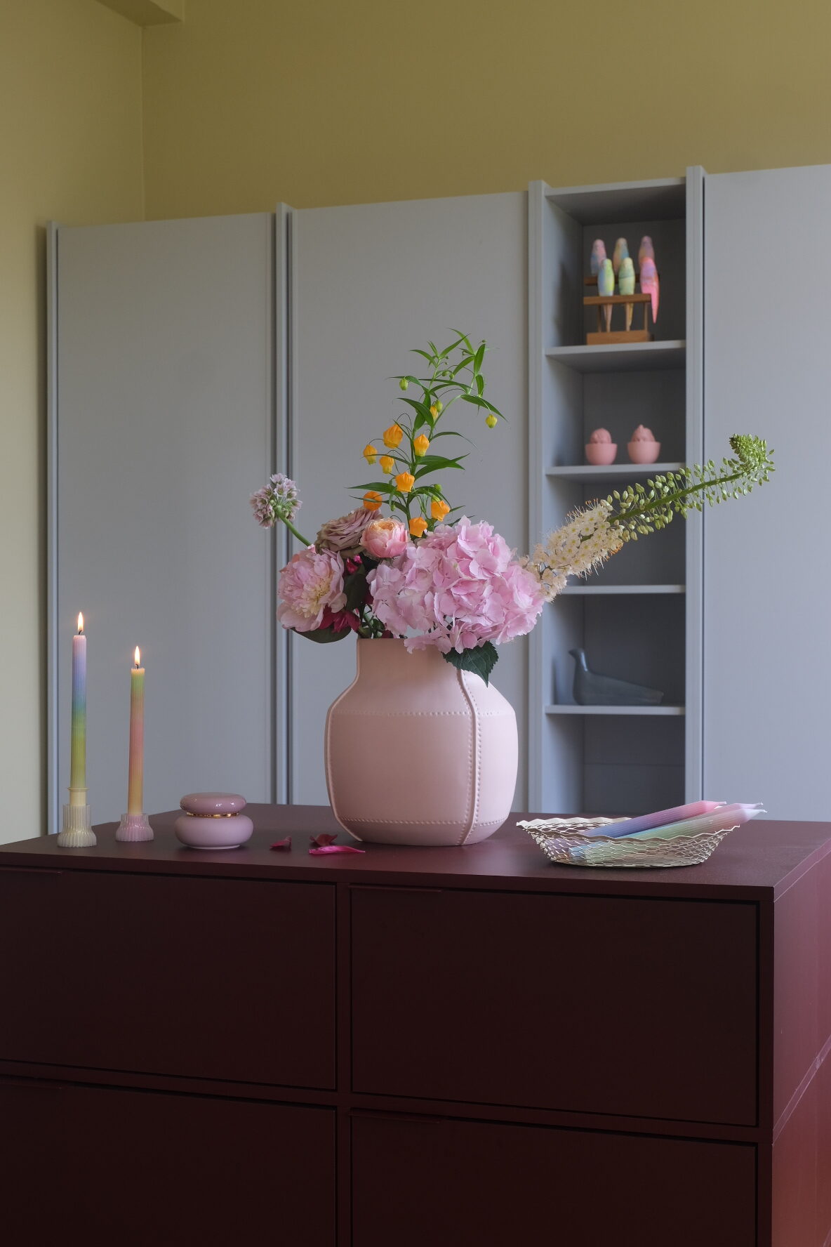 Als je ons twee jaar geleden had verteld dat maar liefst twee ruimtes in Jessica haar huis de kleur geel zouden krijgen hadden we je wellicht uitgelachen en toch gebeurde het: zowel de eetkamer als de ruimte die aan de slaapkamer grenst kregen gele wanden. En hoewel ze op de foto soms misschien hetzelfde ogen zijn het twee compleet verschillende tinten die gedurende de dag (wanneer het licht verandert) compleet anders ogen en een ander – maar oh zo gezellig – gevoel geven.