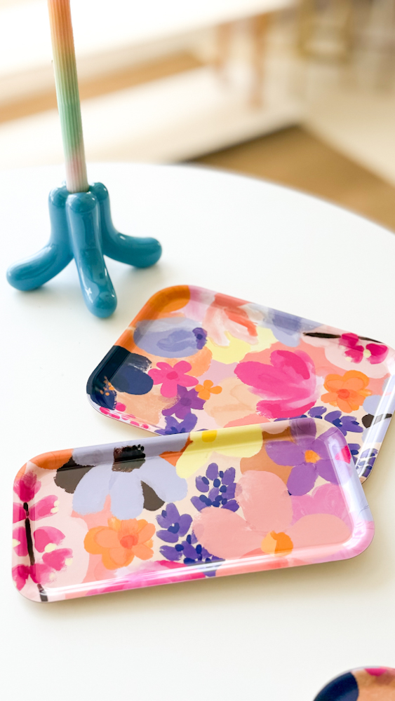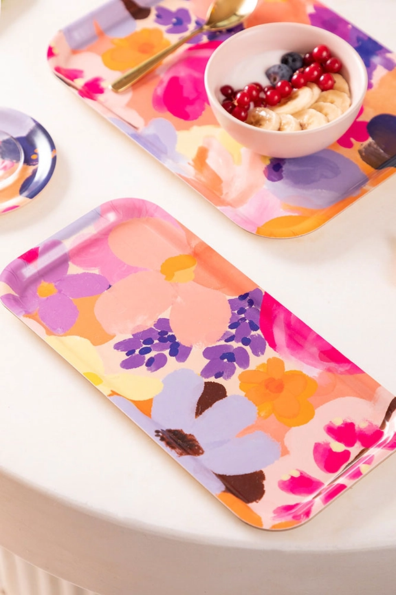 Wat een vrolijke PRCHTG-ontdekking: de bloemige berkenhouten dienbladen .