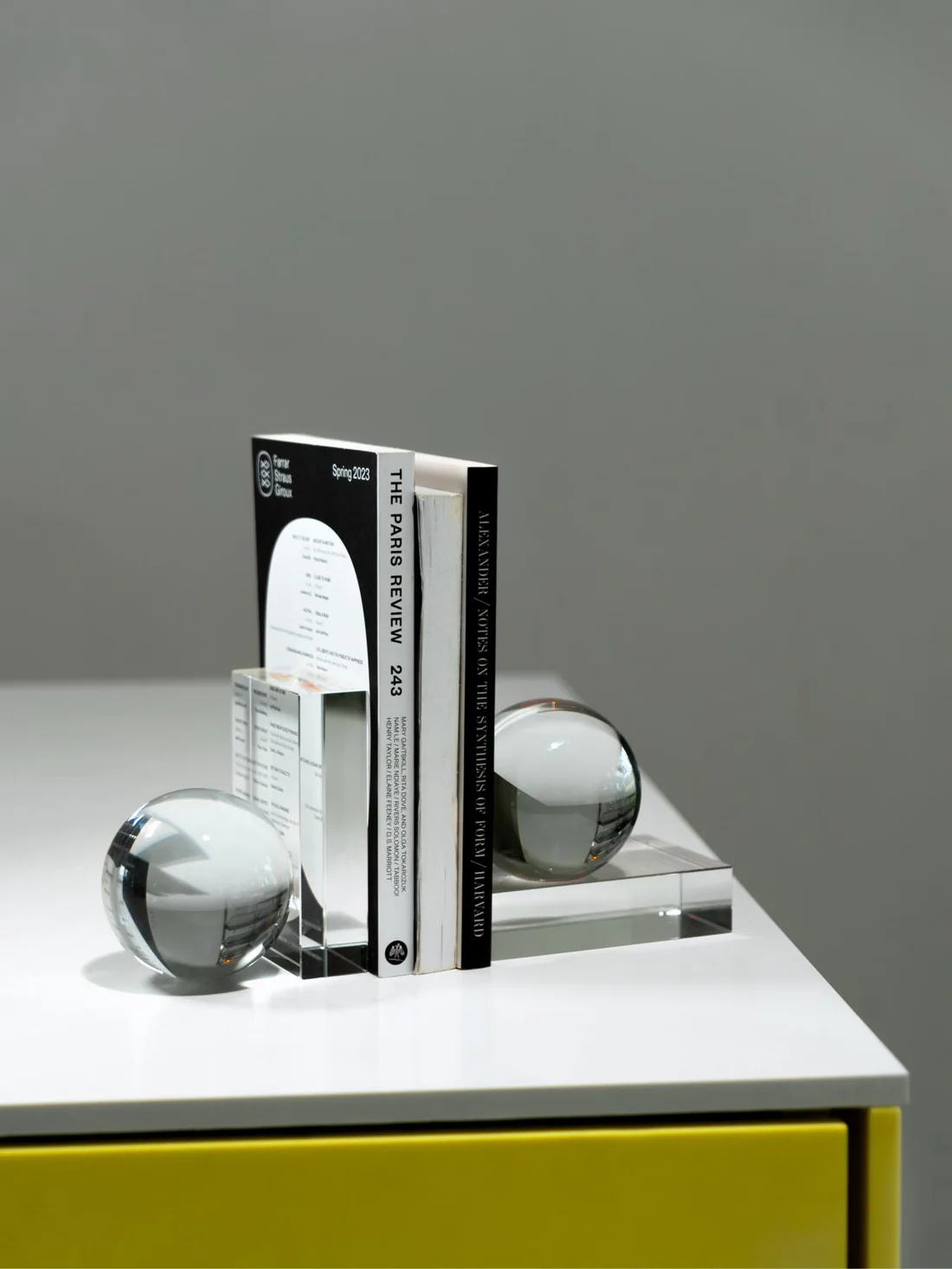 Deze boekensteunen zijn met de hand geslepen en gepolijst uit massief loodkristal, voor een maximale schittering en helderheid. Plaats ze op je boekenplank, dressoir of bij een raam en zie hoe het zonlicht speels door de gepolijste kristalbollen danst.