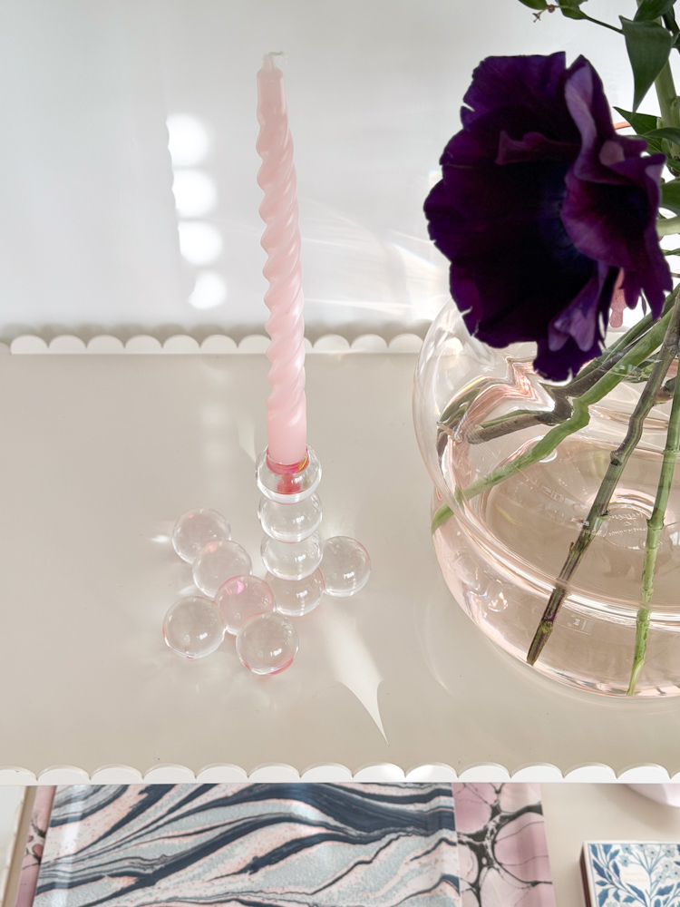 De 12 kristallen bollen zijn met de hand geslepen en verbonden met speciale pigmenten die vanuit onverwachte hoeken zacht oplichten. Het resultaat is een elegante, sculpturale vorm die speelt met licht en sfeer.