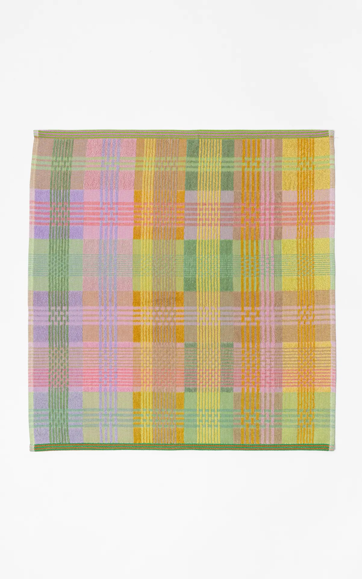 Handdoeken van 50 x 50 cm gemaakt van industriële leftovers. Er wordt in fabrieken altijd wat extra textiel geweven, ‘just in case’, maar meestal wordt daar dus niks mee gedaan. Tot nu! Samen vormen deze restjes vrolijk gekleurde handdoeken voor in jouw keuken of badkamer.