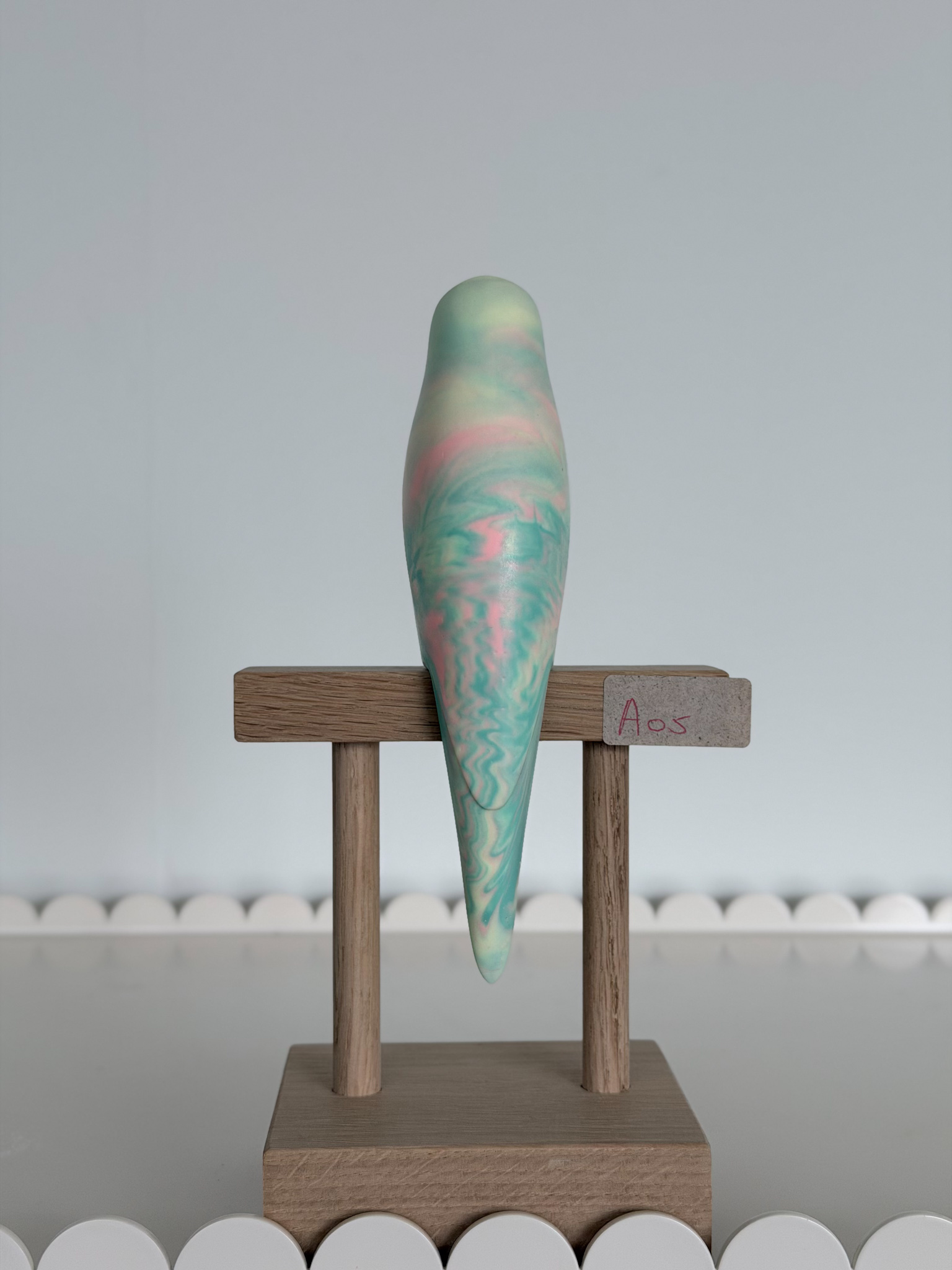 De parkieten van de Australische kunstenaar Pete Cromer worden handgemaakt van resin en daarna allemaal op een unieke manier geverfd. Er is er niet één hetzelfde. Deze te gekke kleurrijke serie is een van Pete’s favorieten!  Ze lenen zich perfect om te verzamelen, het houten standaardje dat los te koop is, biedt dan ook plek aan meerdere vogeltjes, We hebben zelfs een grote standaard in ons assortiment waar er wel 8 op passen.