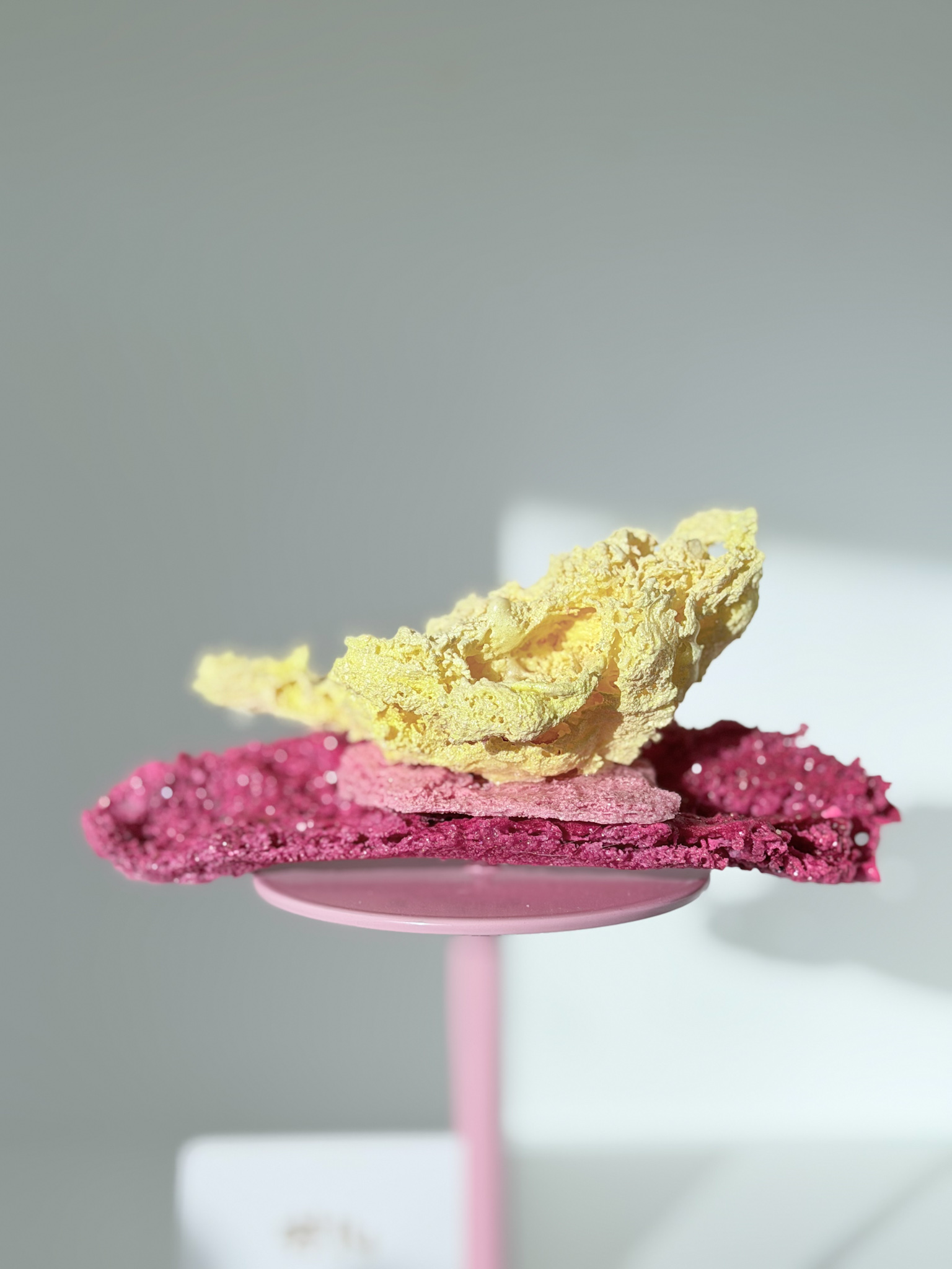 De Stacked Sugar Rocks worden op een verhoogd, roze plateau geleverd. De sculpture is niet permanent bevestigd op het plateau, je kan het dus mét en los van het plateau stylen!