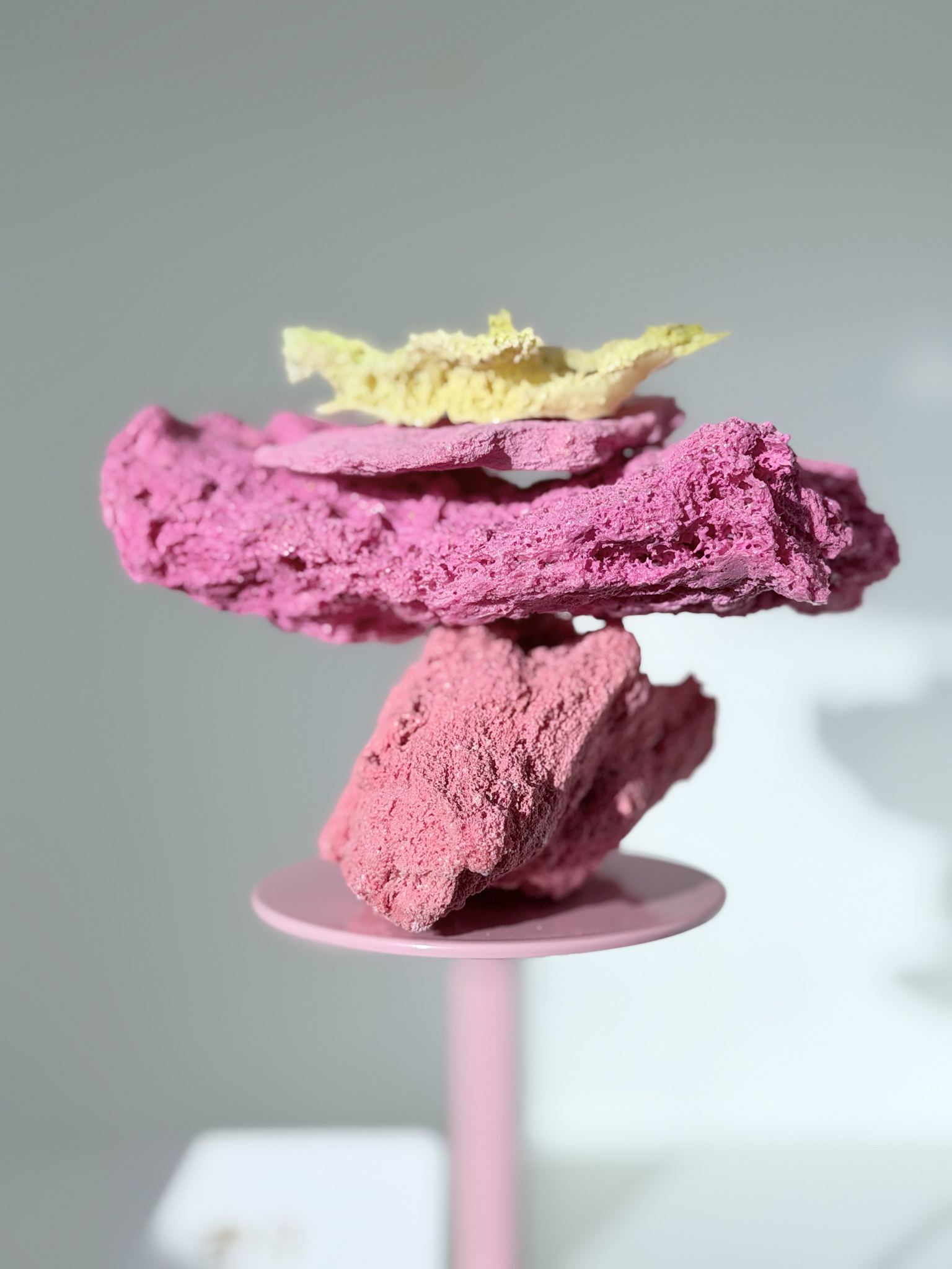 De Stacked Sugar Rocks worden op een verhoogd, roze plateau geleverd. De sculpture is niet permanent bevestigd op het plateau, je kan het dus mét en los van het plateau stylen!