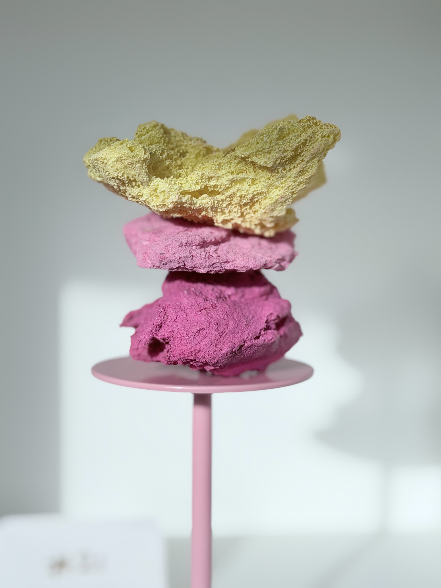 De Stacked Sugar Rocks worden op een verhoogd, roze plateau geleverd. De sculpture is niet permanent bevestigd op het plateau, je kan het dus mét en los van het plateau stylen!