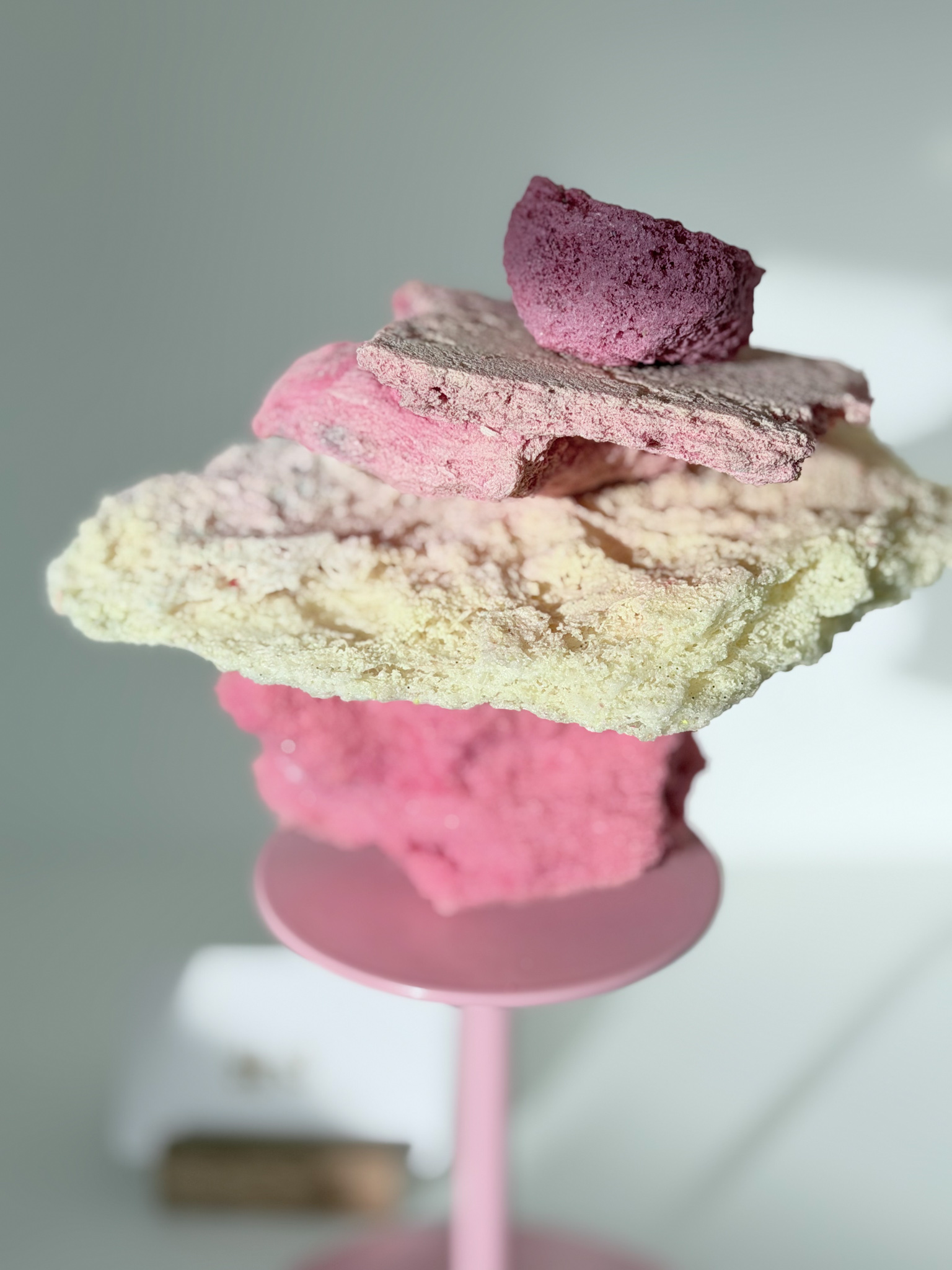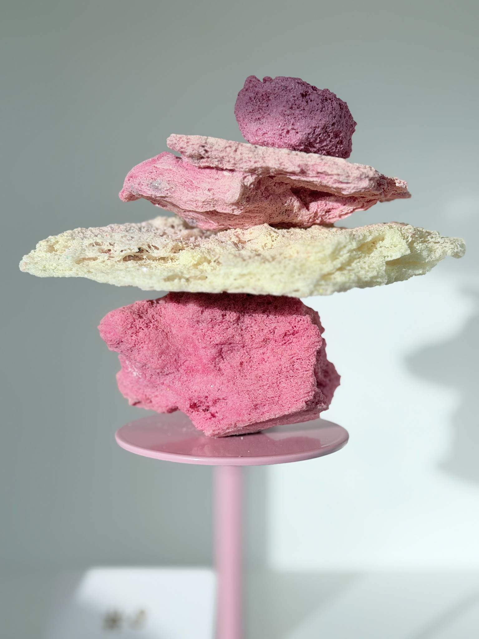 De Stacked Sugar Rocks worden op een verhoogd, roze plateau geleverd. De sculpture is niet permanent bevestigd op het plateau, je kan het dus mét en los van het plateau stylen!
