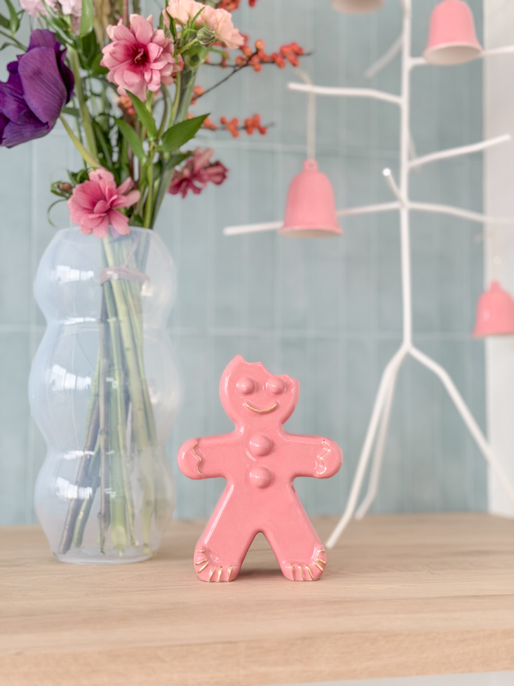 kerstPeperkoekman roze – staand groot model / vaas